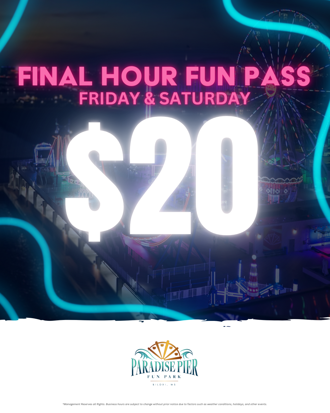 Wrap up your night with our Final Hour Fun Pass! On Fridays